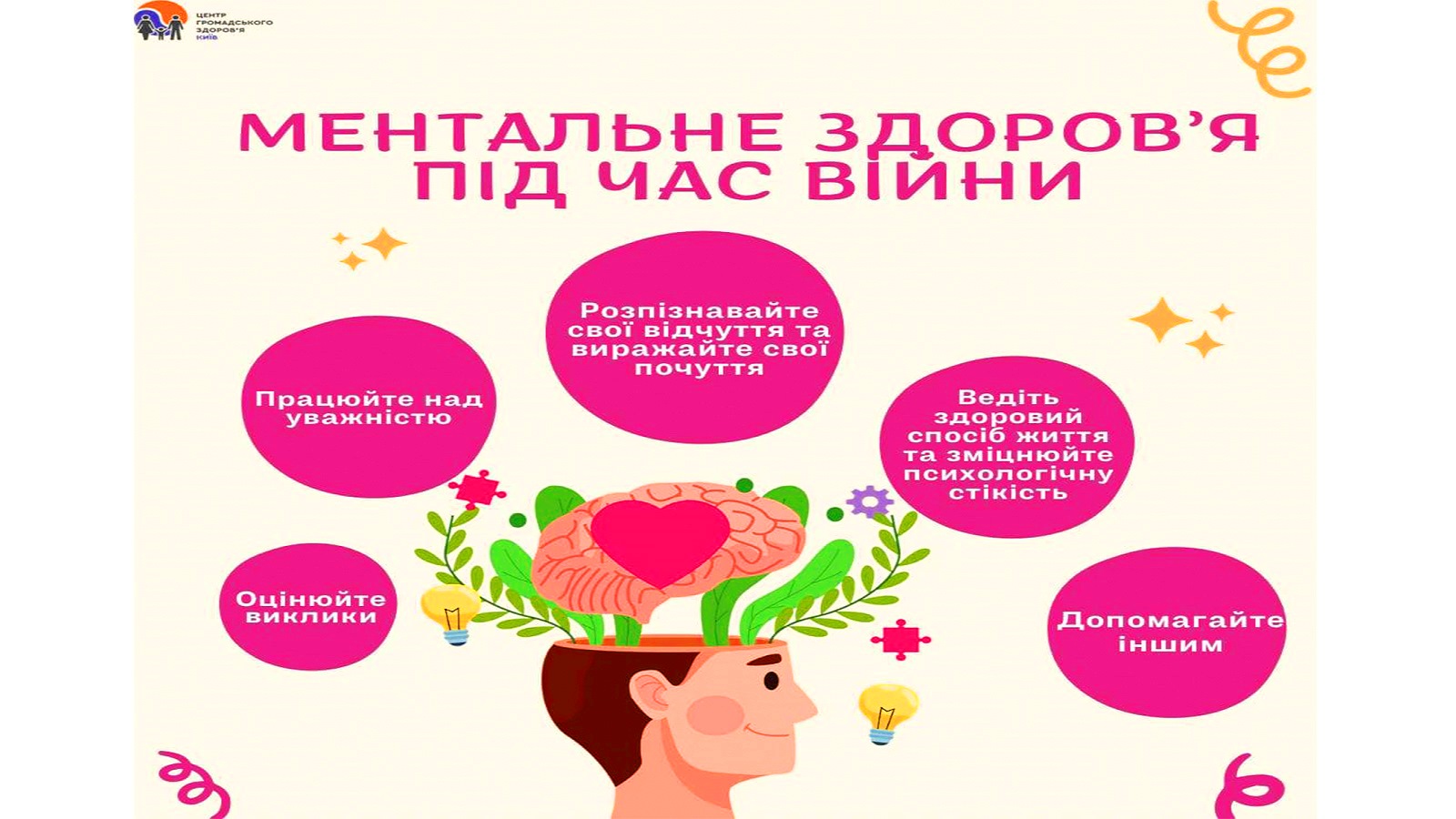 Ментальне здоров'я — це стан психічного добробуту, який дозволяє людині справлятися зі стресом, реалізовувати здібності, навчатися та працювати, робити внесок у життя своєї громади.